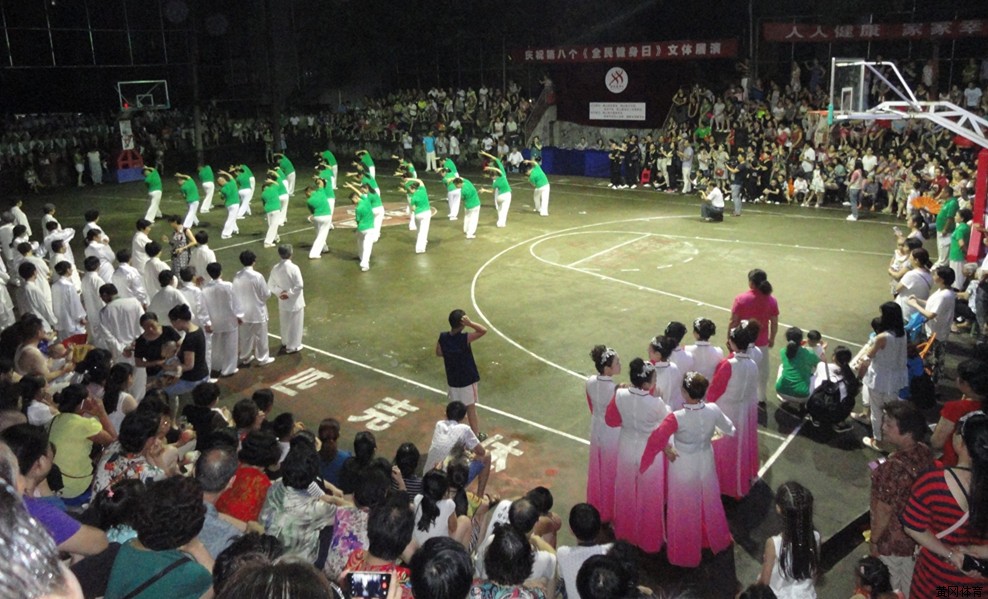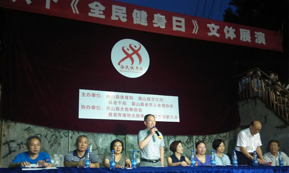 8月8日晚7:00,由英山县体育局、文化局、老干局、老年体协主办,英山县老年体协太极拳专项委员会、舞蹈专项委员会协办的庆祝第八个全民健身日文体展演在英山县政府灯光球场隆重开幕,县领导卢峰、黄泓、伍惠、周清良及有关部门负责人到场指导。开幕式由老年体协主席黄际中主持,副县长伍惠作重要讲话,县委常委、统战部长卢峰宣布展演开始。巴山舞、莲湘舞、健身气功、太极拳、太极剑、太极功夫扇、武当剑、太极刀、少林棍等12个团队的精彩表演,全面展示英山县全民健身的推广项目及最新水平。 当晚8:00,由英山县体育局主办、县篮协承办,县大众房业有限公协办的2016英山县大众杯夏季篮球联赛也在茶乡小镇隆重开幕。茶乡小镇灯光球场人声鼎沸,万名球迷会聚一堂。新凯地产、地税、稳定科技、交警、五城、机动大队、山水名居、法院、检察院等9支队伍参赛。副县长伍惠讲话,县检察院检察长、县篮球协主席董昌宣布开赛。