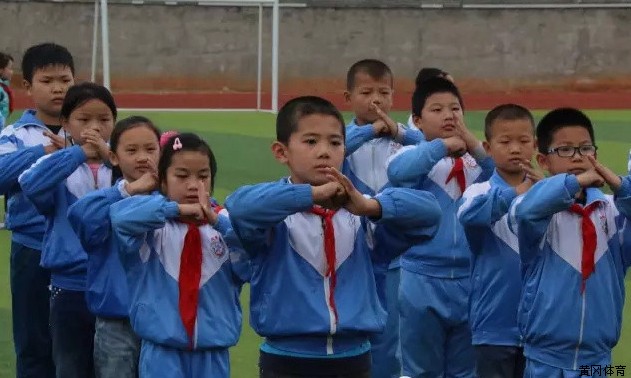武穴市武师附小明德分校举行武术操比赛现场