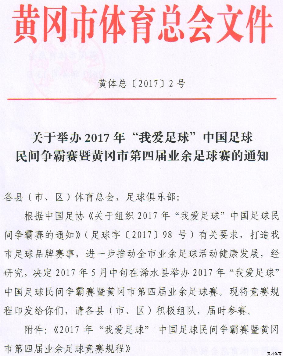关于举办2017年“我爱足球”中国足球民间争霸赛的通知