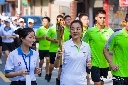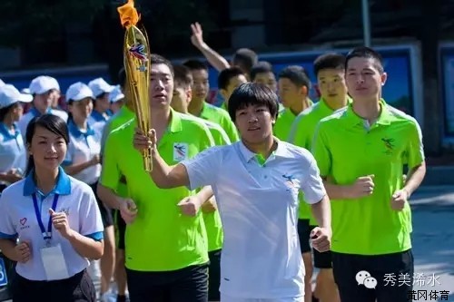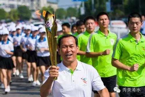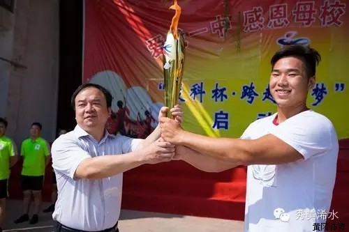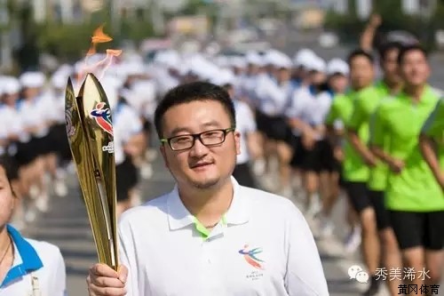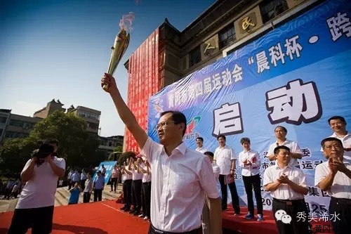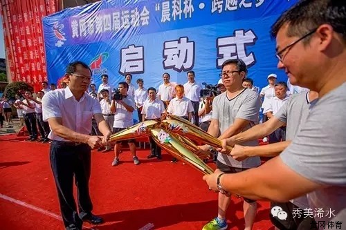 县委书记、县组委会名誉主任吴烨同志点燃四运会“跨越之梦”火炬,并将火炬交给火炬手。