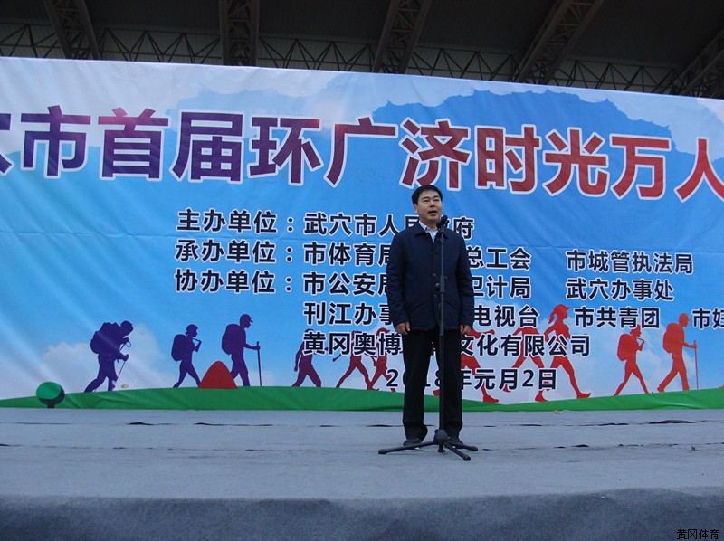 1月2日,由武穴市人民政府主办,体育局、总工会、城管执法局承办的武穴市首届环广济时光万人迎春健步行活动在该市全民健身中心田径场启动。武穴市政府副市长毛永超主持活动,武穴市委常委、常务副市长高维鹏致辞,市委书记郝胜勇为活动发令。