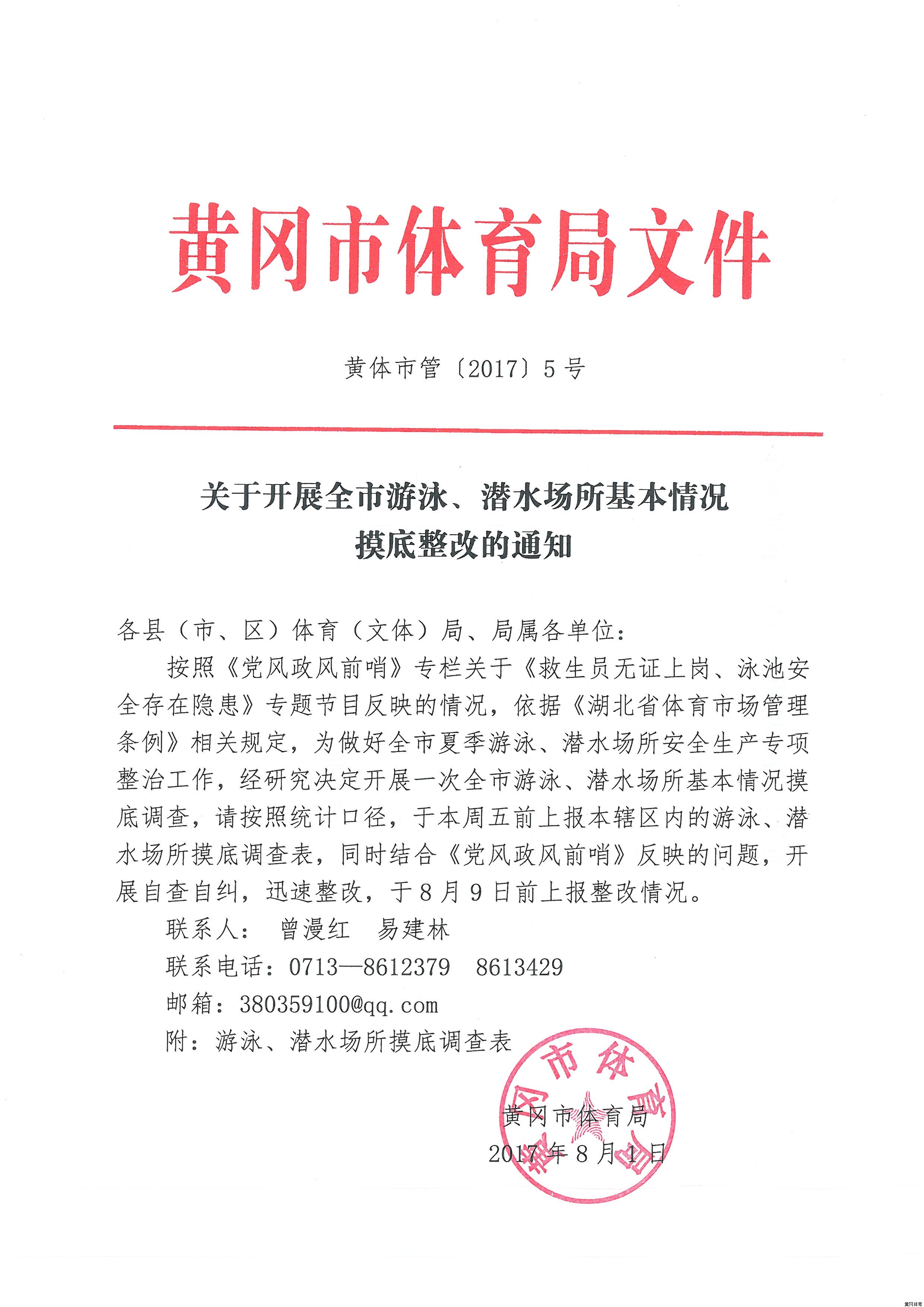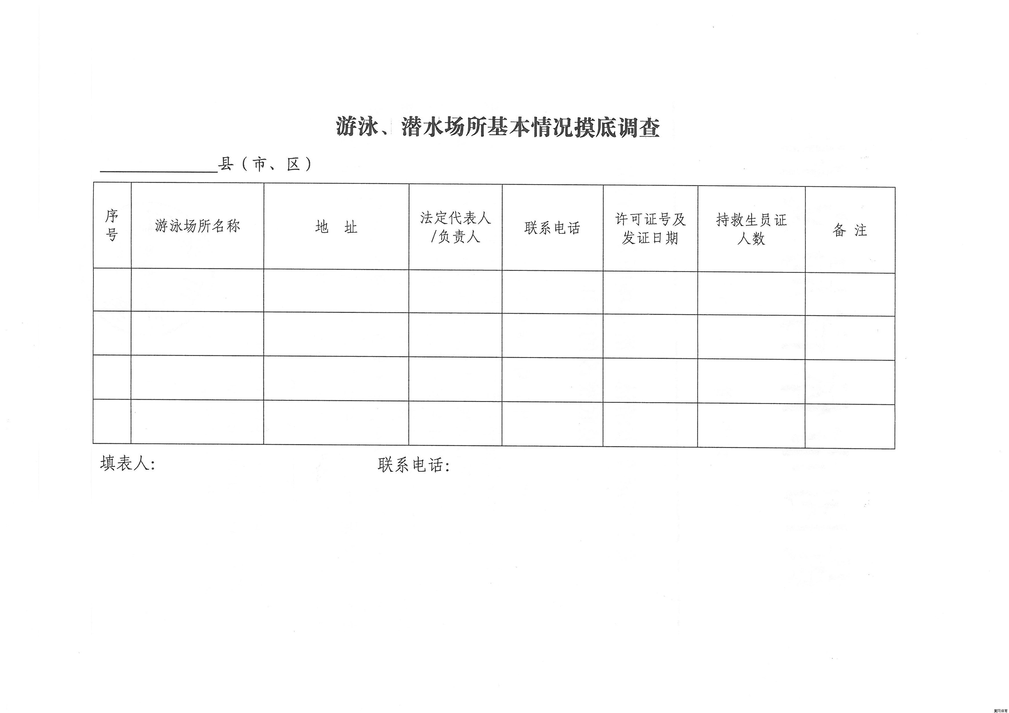 关于开展全市游泳、潜水场所基本情况摸底整改的通知
