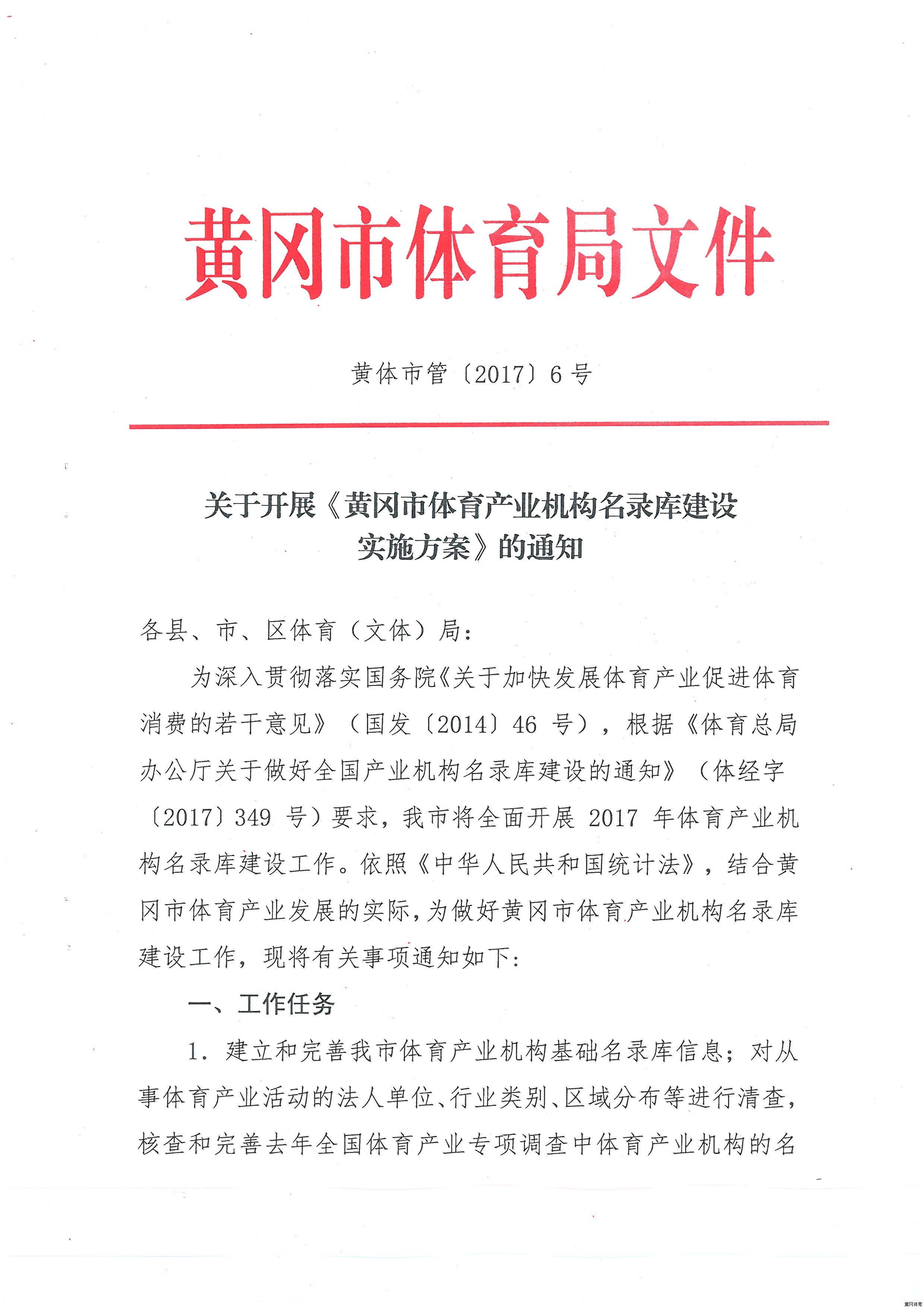 关于开展《黄冈市体育产业机构名录库建设实施方案》的通知