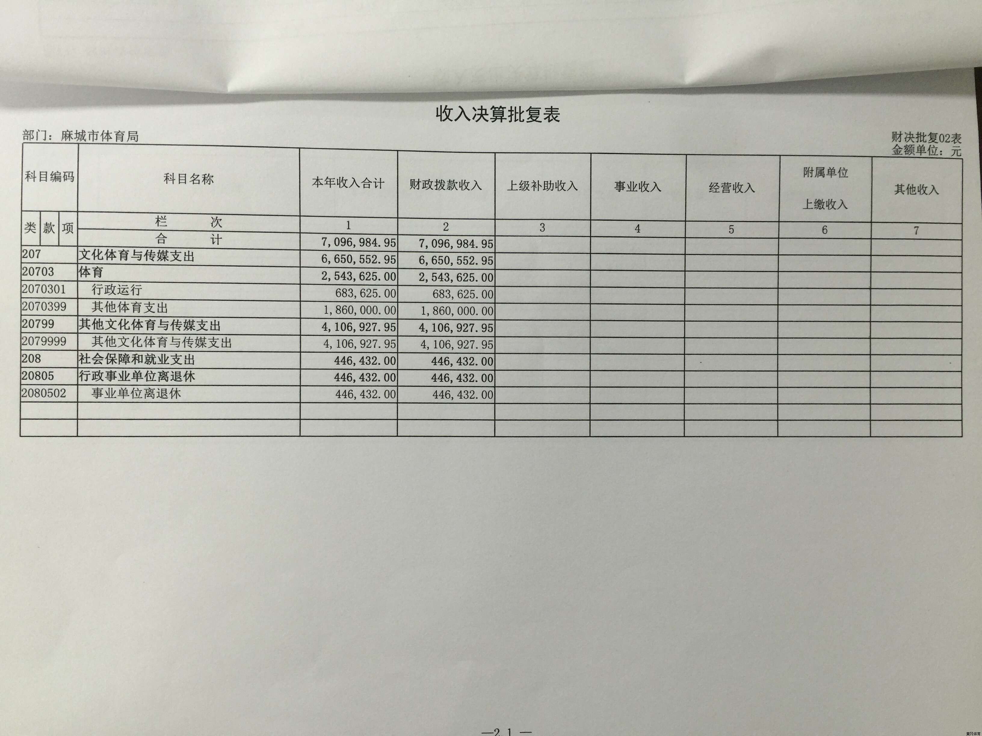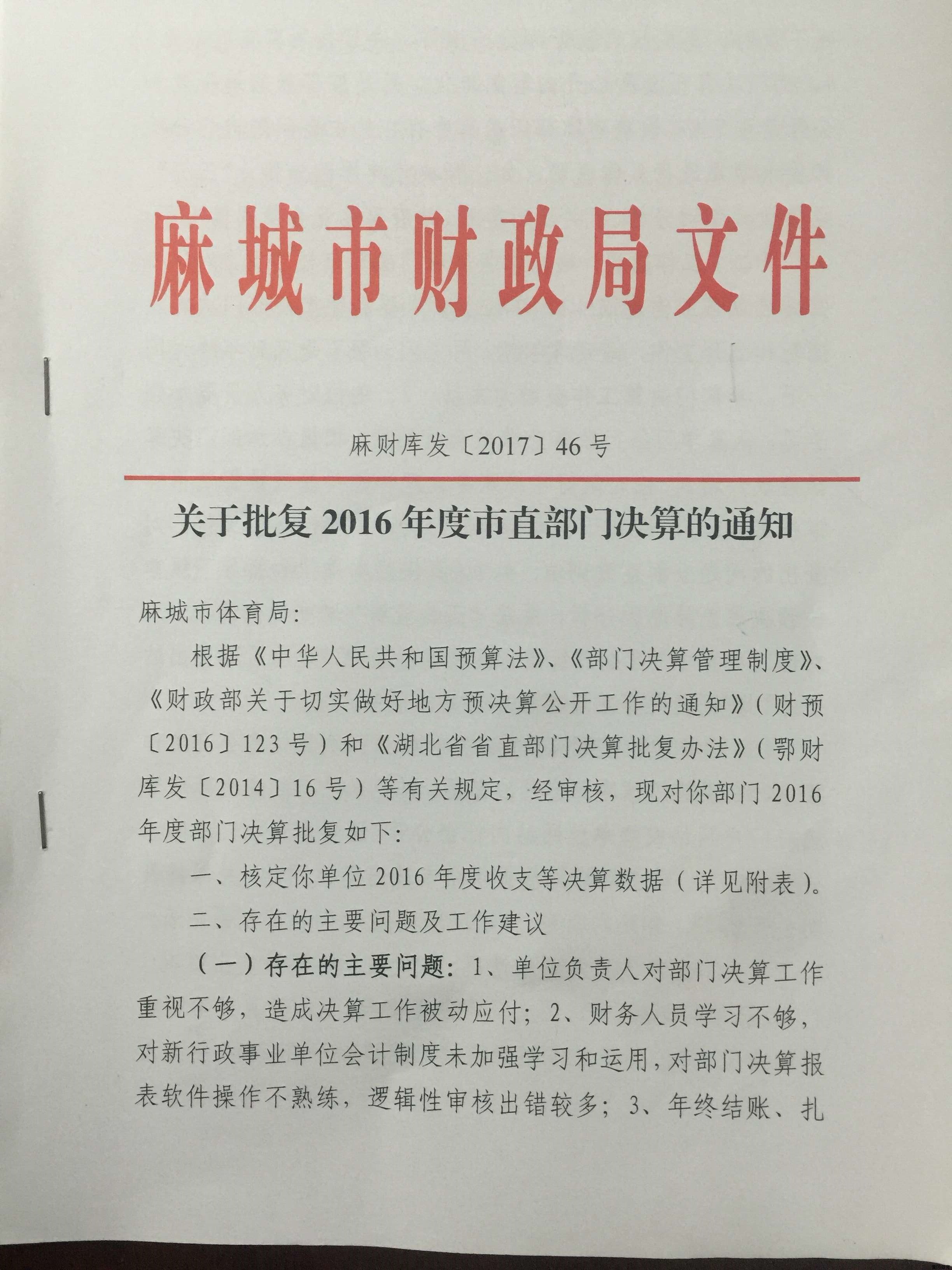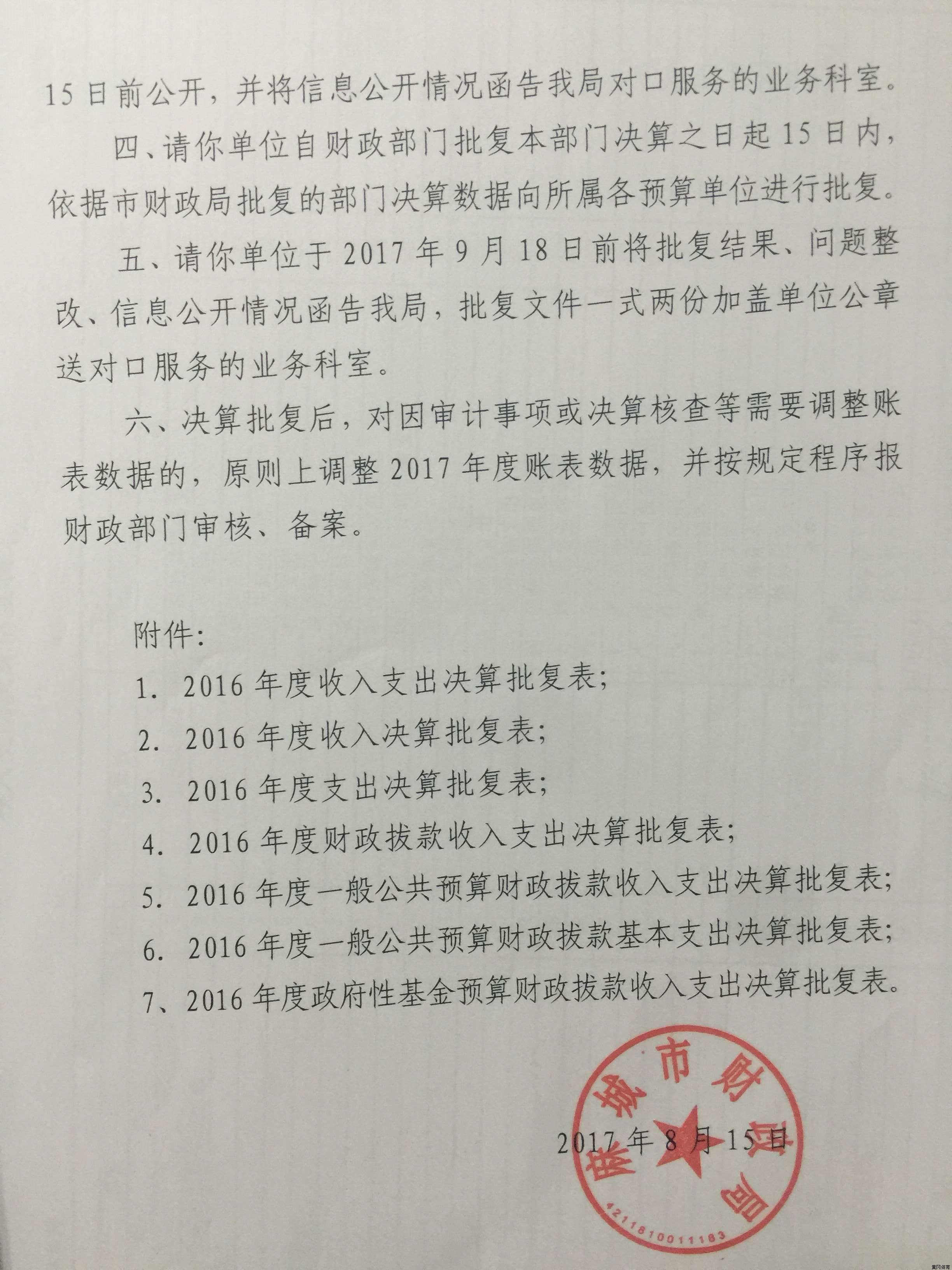 麻城市体育局2016年财政预算批复表及2017年预算表