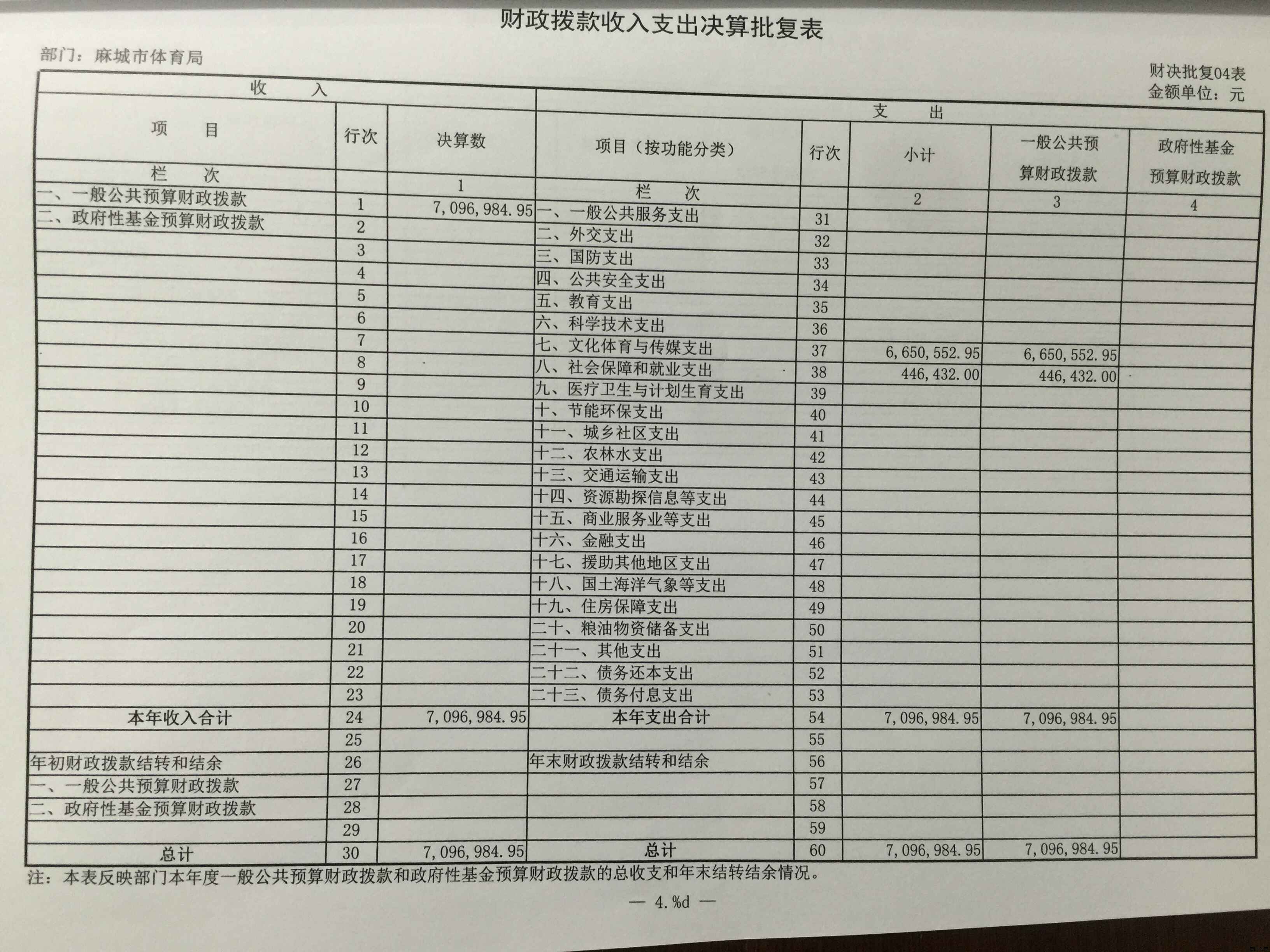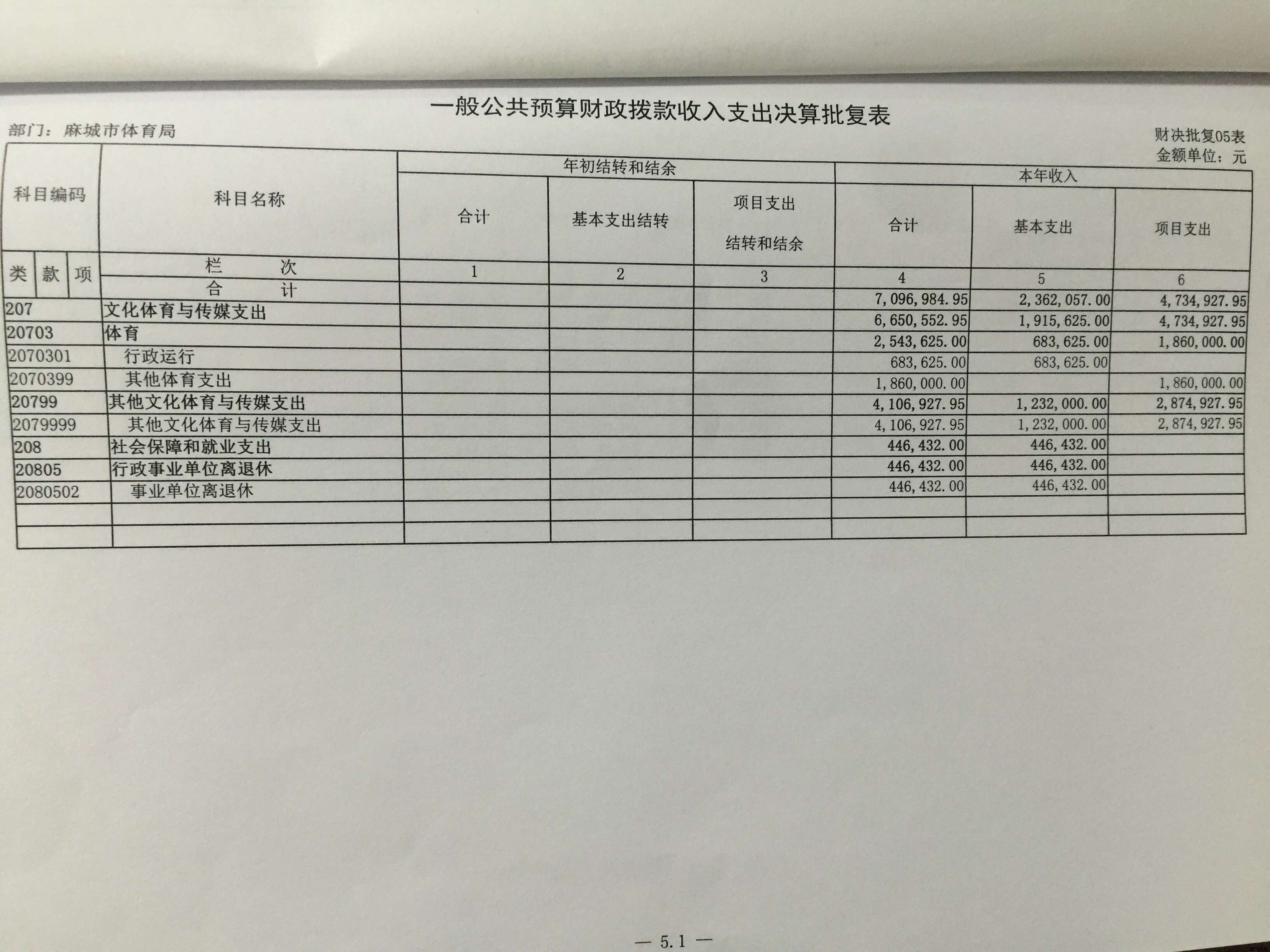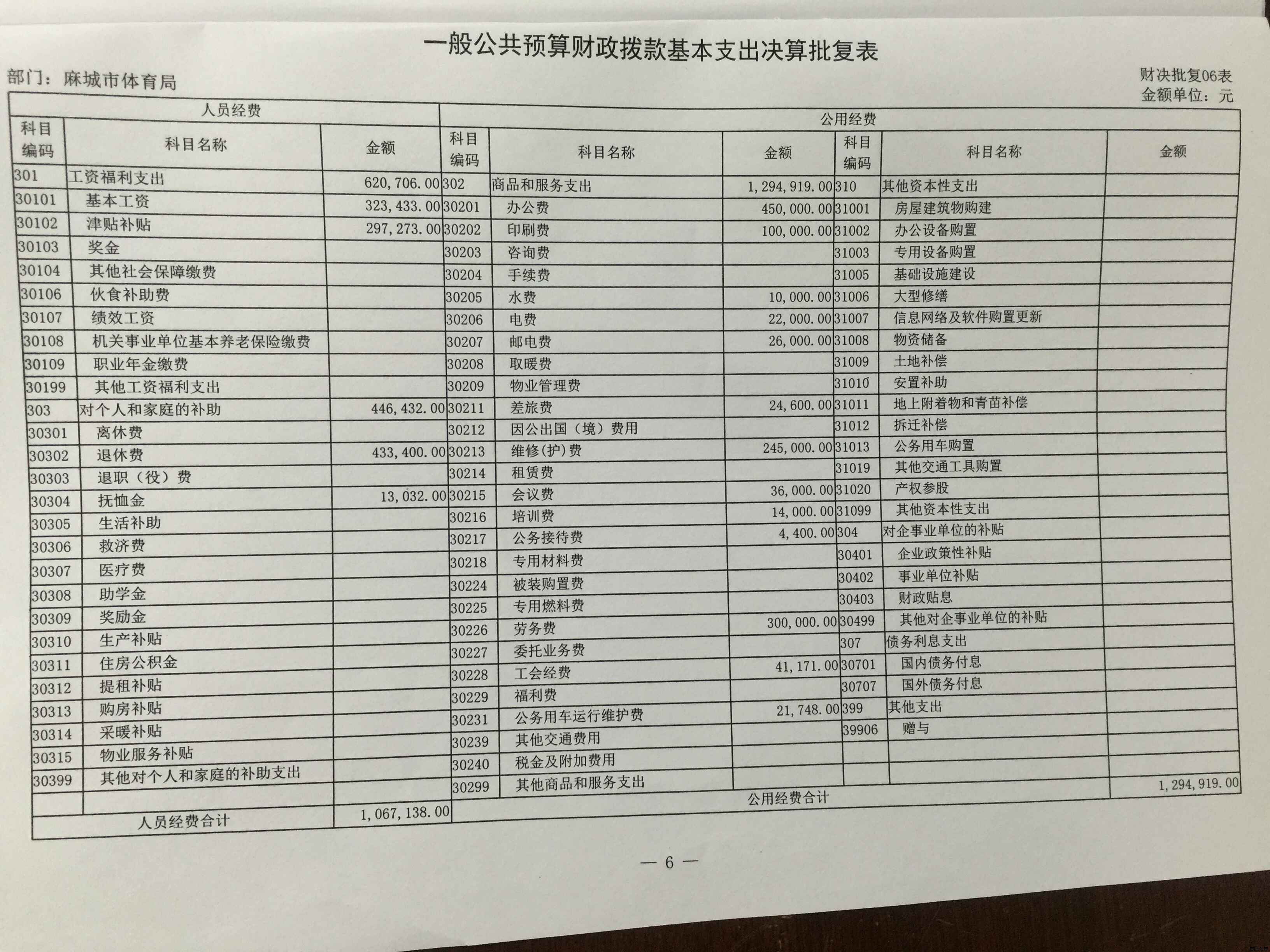 麻城市体育局2016年财政预算批复表及2017年预算表