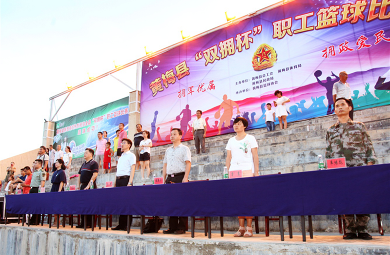 在中国人民解放军建军90周年到来之际,为展示“拥军优属、拥军爱民”光荣传统,增进军民团结友爱,促进全民健身运动蓬勃发展,7月17日晚,黄梅县“双拥杯”职工男子篮球赛,在县体育活动中心灯光球场隆重开幕。